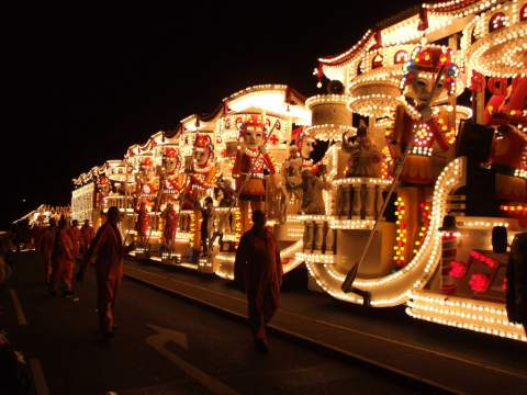 03 Nov 2025 [TBC] Burnham on Sea Carnival Mon 19:30. Part of the Somerset Carnival Ring. Many floats are 100 ft long, each illuminated by up to 25,000 light bulbs. This is a Major event - takes 3 hours to pass by. Carts, plus walkers in fancy dress and marching bands. The carts can have up to 25,000 light bulbs and can be up to 100ft long. The Somerset Illuminated Carnivals are probably the largest in the world - Bridgwater, Burnham, Chard, Ilminster, Glastonbury, North Petherton, Shepton Mallet, Taunton, Wellington, Wells, Weston-Super-Mare, and Yeovil. Burnham on Sea Illuminated Carnival