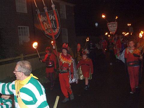 Annual event held on a Saturday late in October. Supported by many of the Sussex Bonfire Societies. 19:00 Torch processions, 21:00 Giant bonfire, impressive firework display set to music, plus the famous Fletching flame balls. Free entrance. Village closed to traffic from 18:00. Video: Procession Bagpipes Fireworks